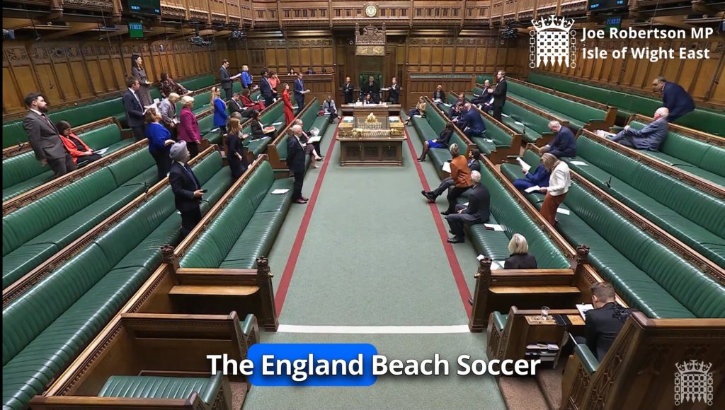 Beach soccer took an important step forward in England after being formally presented at the Houses of Parliament during meetings with Members of Parliament responsible for sport-related matters.